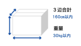 1梱包:3辺合計160㎝以内・重量30㎏以内