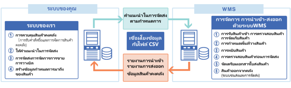 การจัดการสินค้าคงคลังจะดำเนินไปอย่างราบรื่นยิ่งขึ้น ด้วยการเชื่อมต่อข้อมูลในระบบระหว่างฝั่งลูกค้าและฝั่ง SG SAGAWA (THAILAND) ทางเราใช้ระบบจัดการสินค้า WMS (Warehouse Management System) ในการควบคุมปริมาณสินค้าและพื้นที่จัดเก็บให้เหมาะสม